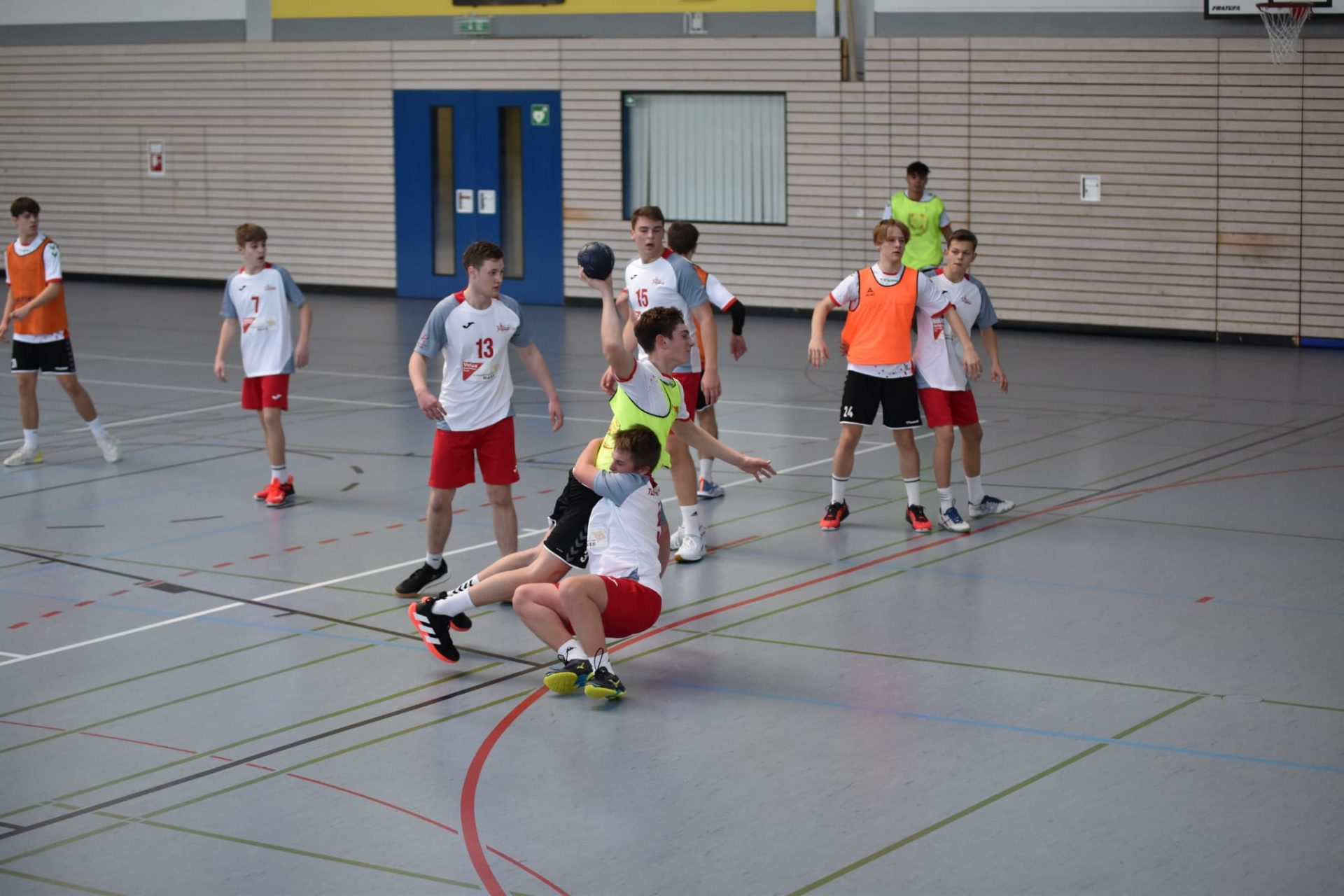 Schnell gelang ein 0:3 und gefühlt war alles eine sichere Sache. Doch der Gegner konnte immer wieder einige Schwächen in der Abwehr aufdecken und auch einige sehenswerte Konter landen. So stand es zur Verwunderung vieler auf einmal 8:7 für den Gastgeber. Nun ging ein Ruck durch die Mannschaft und durch Erhöhung des Tempos und eine konzentrierte offene Abwehr gelangen einige Konter und schön herausgespielte Tore. Somit ging man verdient mit 12:16 in die Halbzeit.