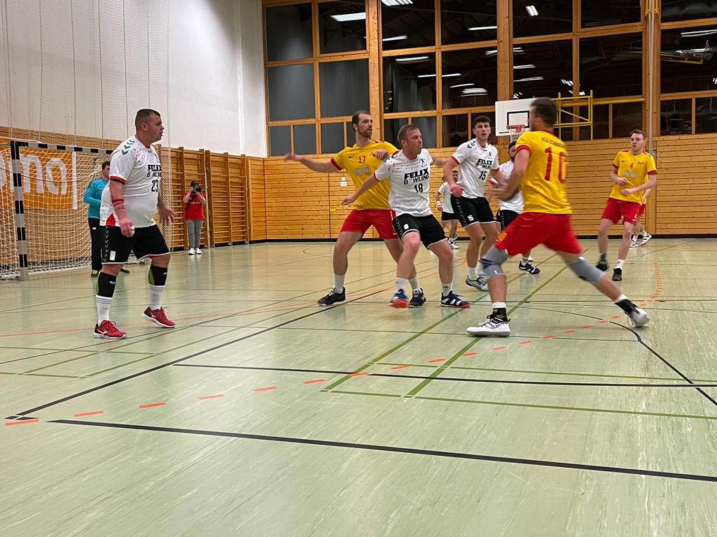 Die zweite Halbzeit verlief ebenfalls ordentlich und begann durch Treffer von Mihailo Ilic und zweimal Jonas Hoffmann mit einem 3:0-Lauf unseres Teams (13:15 in der 36. Minute). Das 15:16 durch Hubert Portz-Funke zwei Minuten danach sollte aber leider die letzte Führung der Gäste sein. Trotz guter Offensivaktionen fehlte im Abschluss zu oft die Präzision und wir mussten fünf Minuten vor Spielende die Gastgeber auf 25:22 davonziehen lassen. Das Team von Trainer Kico Muhaxheri bewies aber Moral und glich durch Danny Bernhardt, Erik Obenauer und Jonas Hoffmann nochmals aus. Ein Siebenmeter-Tor von Marcel Brüggemann entschied schließlich das Spiel (26:25).