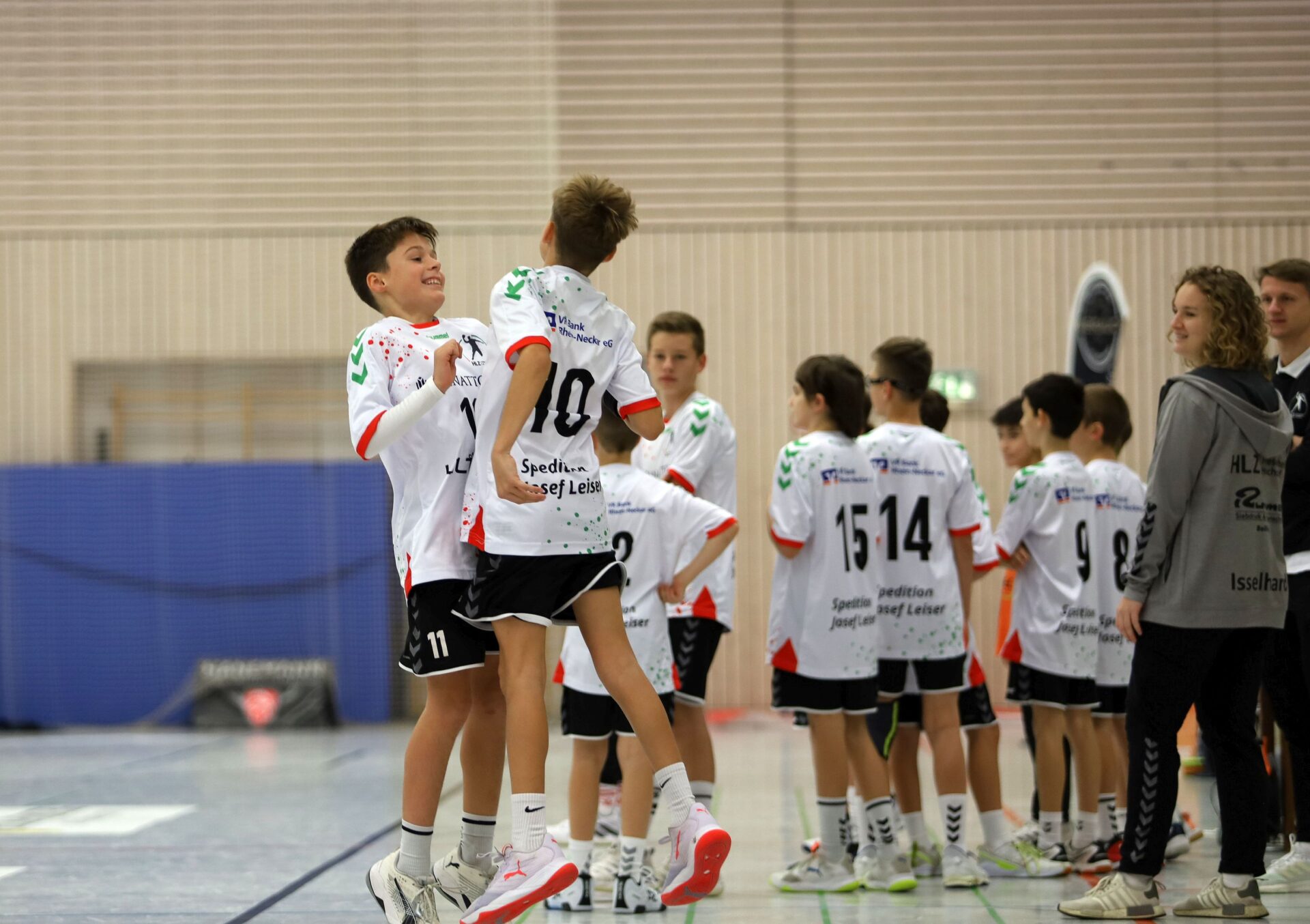 Mit jeder Menge Motivation traf das Trainerteam am Montag eine große Trainingsgruppe an, bereit sich auf das anstehende „Power-Wochenende“ mit dem Derby gegen die Panther am Samstag und der eigentlichen 3. Runde des Förder-Cups am Sonntag einzustimmen. Doch neben der ungeplanten Sperrung der Ries-Halle, welche für Wirbel im Trainingsplan sorgte, fielen im Laufe der Woche auch gleich 6 Spieler des D1-Kaders verhindert und krankheitsbedingt aus. Die Breite und Ausgeglichenheit des Kaders der gesamten U13 spielte uns dabei in die Karten und so fand man sich am Samstagmittag mit einem 12-köpfigen Kader in Schifferstadt wieder. Gut vorbereitet auf das sehr taktisch ausgelegte Spiel der Panther fand der HLZ-Nachwuchs gut ins Spiel. Die 1:0 Führung nach Angriff 1 sollte die einzige für die Jungpanther an diesem Tag bleiben. Man wusste den spielstarken Vincent Worf gut zurückzudrängen und konnte ihm das Tempo für das 1vs.1 nehmen. Immer wieder gelang es im rechten Rückraum, durch kluge Zusammenarbeit von Julian Angel, Max Hoffmann und Tarje Eichner den druckvollen Schifferstadter Angriff zu stoppen. Auf der anderen Seite sahen die Zuschauer einen geduldig spielenden Angriff, welchem noch der Mut fehlte die Lücken in die Tiefe anzulaufen. Dennoch spielte man den Ball geduldig durch die eigenen Reihen und konnte dadurch klare Wurfchancen auf allen Positionen herausarbeiten. Um Kräfte zu sammeln, legte das Trainerteam um Fabian Manger und Anna Isselhard in Spielminute 10 bei einem Stand von 4:5 das Timeout. Während es in der Abwehr kaum Verbesserungspotenzial gab, sprach man die überwiegende Seitwärtsbewegung im Angriff an, jeder Spieler sollte noch einen Schritt mehr Richtung Tor gehen. Trotz schwindender Kräfte aufgrund des körperlichen Abwehrspiels gelang es nun immer wieder einfache Tore durch 1 vs. 1 oder den getimten Pass zum Mitspieler zu erzielen. Einzig eine kleine Unaufmerksamkeit in den letzten 20 Sekunden der ersten Hälfte verhinderte die 3-Tore Führung und man verabschiedete sich mit 10:12 in die Halbzeit.