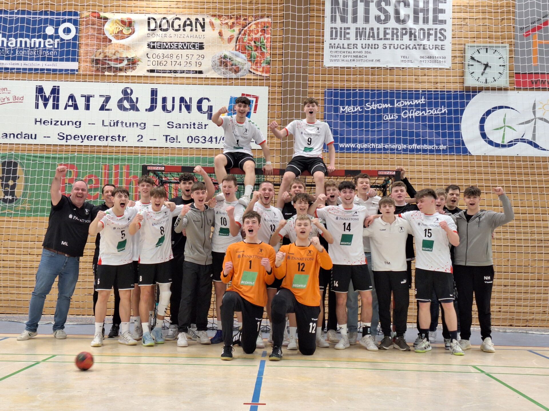 , 6:18 (24.), ging es dann mit einer beruhigenden 9:22 Führung in die Halbzeit. In der 2. Halbzeit konnte sich Trainer Kai Christmann dann auch ohne Probleme erlauben, die am nächsten Tag in der A-Jugend eingesetzten Spieler Lenny de Hooge, Nils Chrust und Karl Sommer zu schonen. Am Ende stand ein völlig ungefährdeter 24:41 Sieg zu Buche, und die Jungs konnten den Meistertitel feiern. In den kommenden Wochen wird sich die Konzentration sicher schon auf die anstehenden Achterfinalbegegnungen der Deutschen Meisterschaft richten. Hier wird der Gegner wahrscheinlich Coburg oder Magdeburg heißen. Das Hinspiel wird am Wochenende des 13./14.04. stattfinden, bevor dann am darauffolgenden Wocheneden das Heimspiel ausgetragen wird. Merkt euch den Termin also schonmal vor, die Jungs freuen sich auf Unterstützung!