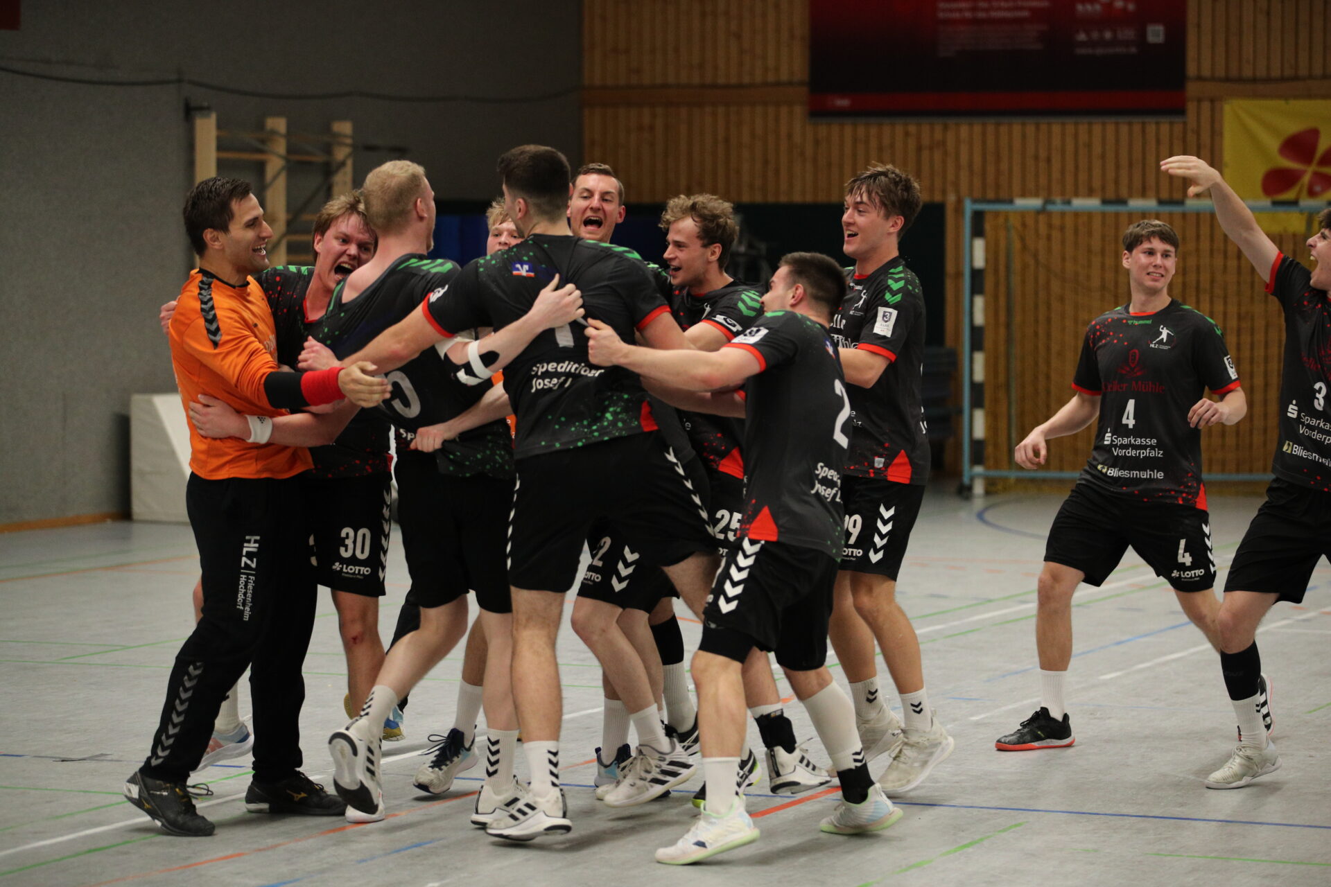 Es drängte sich in der Pause das Gefühl auf, dass man einen höheren Vorsprung leichtfertig aus der Hand gegeben und somit eine mögliche, zumindest kleine Vorentscheidung verpasst hatte. Die Löwen zeigten dann auch, dass sie gewillt waren ihre letzte Chance im Kampf um den Klassenerhalt zu nutzen. Nach dem 9:12 durch Moritz Schulz glichen die Gastgeber trotz zweimaliger Unterzahl durch Ante Grbavac und zweimal Dusan Maric zum 12:12 in der 36. Minute aus. Unsere Jungs konnten sich in der Offensive kaum noch durchsetzen und scheiterten immer wieder am starken Sebastian Bliß im Tor von Interaktiv. Die Nervenschlacht war eröffnet und es schien, als könnte sich die größere Erfahrung der Gastgeber durchsetzen. In der 38. Minute erzielte Alexander Poschacher die erste Führung der Heimmannschaft (14:13). Düsseldorf-Ratingen hatte im Spiel über Linksaußen Tomislav Nuic seine Erfolgsformel gefunden, der die nächsten drei Treffer für sein Team erzielte. Das HLZ hielt über Mihailo Ilic und Kaspar Manfeldt Hansen dagegen. Bis zur 50. Minute beim Spielstand von 18:18 gingen die Löwen stets mit einem Tor in Führung und die Schmiedt-Sieben glich postwendend aus. Die Nerven der HLZ-Fans waren zum Zerreißen gespannt, mussten sie doch unzählige vergebene Chancen und technische Fehler ihrer Jungs mit ansehen. Vor allem das eigene Überzahlspiel wusste man nicht zu nutzen, die Nervosität der jungen Truppe war förmlich greifbar. Routinier Alexander Oelze brachte dann auch die Gastgeber mit 19:18 in Führung und Dusan Maric erhöhte vier Minuten vor Spielende mit einem schönen Dreher auf 20:18. Dem Anschlusstreffer von Luis Maier setzte Jonas Perschke die neuerliche Zwei-Tore-Führung mit einem Durchbruch auf Halblinks entgegen. Auszeit HLZ – noch zwei Minuten! Unser Kapitän Simon Schwarz wird am Kreis angespielt und verkürzt sicher zum 21:20. Der Angriff der Löwen verpufft und vier Sekunden vor der Schlusssirene fasst sich Luis Maier ein Herz und schweißt die Kugel unten links zum Ausgleich ein. Nochmals Auszeit Ratingen, doch der letzte Wurf aus großer Distanz landet in den Händen von Philipp Wenning, der ab der 46. Minute zwischen den Pfosten stand, und der Rest ist Jubel in Grün-Weiß-Rot!!!