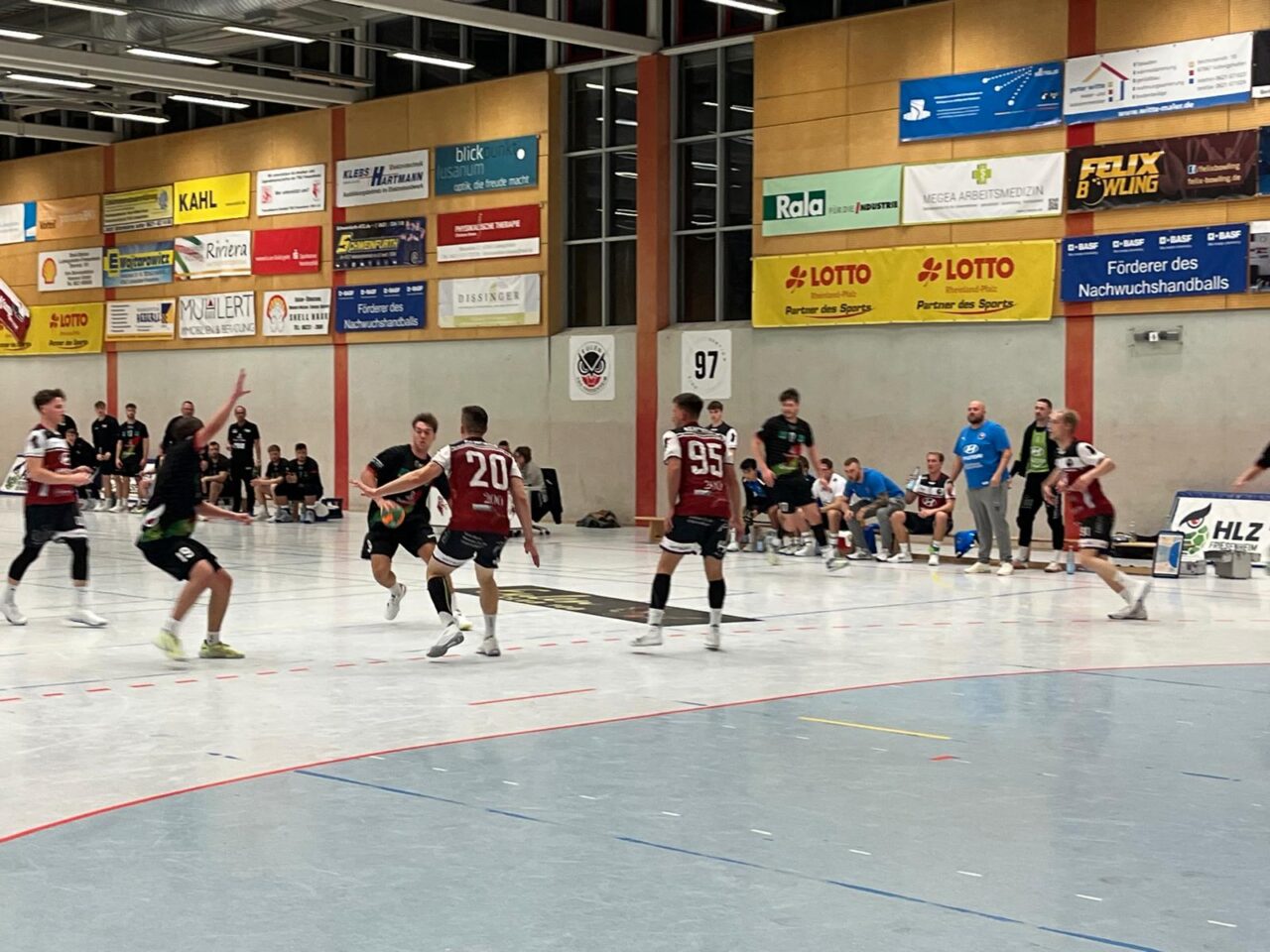 Im zweiten Halbfinale kam es dann zum mit Spannung erwarteten Auftritt des HLZ Friesenheim-Hochdorf gegen die HG Saarlouis. Bei den Gastgebern waren erstmals alle Neuzugänge auf der Platte und auch die Saarländer traten mit dem nahezu kompletten Kader inklusive Top-Neuzugang Yves Kunkel an. Unser Team kam hervorragend in die Partie. Basierend auf eine kompakte 6:0-Abwehr mit einem starken Roko Peribonio zwischen den Pfosten ging man mit 4:1 in Führung. Einen Ballverlust, einen technischen Fehler und einen Fehlwurf später war die Partie gekippt und Saarlouis führte 4:5. Trainer Gabriel Schmiedt schickte nun nach und nach seine Neuzugänge auf die Platte und diese führten sich hervorragend ein. Bei seiner ersten Aktion war Kreisläufer Alexander Kubitschek nur mit einem Foul zu bremsen, Moritz Schulz verwandelte den fälligen Siebenmeter zum 6:6. Lennart Cotic (wie Kubitschek und Roy James Neuzugang von der TGS Pforzheim) setzte ebenfalls mit seiner ersten Aktion eine Duftmarke, traf aus dem Rückraum zum 11:9 und eröffnete damit eine starke Phase des HLZ, die mit dem 14:9 durch Moritz Schulz auf das leere Tor nach Ballgewinn von Niclas Josten (Neuzugang vom TV Nieder-Olm) ihre Vollendung fand. Mit einem durchaus überraschenden 14:10 für die Gastgeber ging es kurz darauf in die Kabinen. Zur zweiten Halbzeit feierte jetzt auch Oskar Knudsen Premiere im Trikot des HLZ und löste Roko Peribonio zwischen den Pfosten ab. Saarlouis zeigte sich engagiert und wollte die Partie drehen, um das erhoffte Finale gegen die Eulen Ludwigshafen zu erreichen, konnte aber zunächst nicht verkürzen. Beim Stand von 17:13 überstanden unsere Jungs eine doppelte Unterzahl – rückblickend sicherlich eine spielentscheidende Phase. Denn auch in der Folge konnten die Saarländer zwar verkürzen, der Ausgleich oder gar eine Führung blieb ihnen aber verwehrt. Erfreulich aus Sicht des HLZ, dass Jan-Philipp Winkler ab der 30. Minute nach langer Verletzung wieder mitwirken konnte und sich nahtlos in die Mannschaft einfügte. Beim Stand von 20:18 hielt der bis dahin etwas glücklose Oskar Knudsen mit seiner Parade die Gäste auf Distanz. Kurz darauf sorgte Simon Schwarz nach Zuspiel von Lennart Cotic für die Entscheidung. Die Freude über den Finaleinzug gegen den großen Bruder war groß – Endstand 21:19.