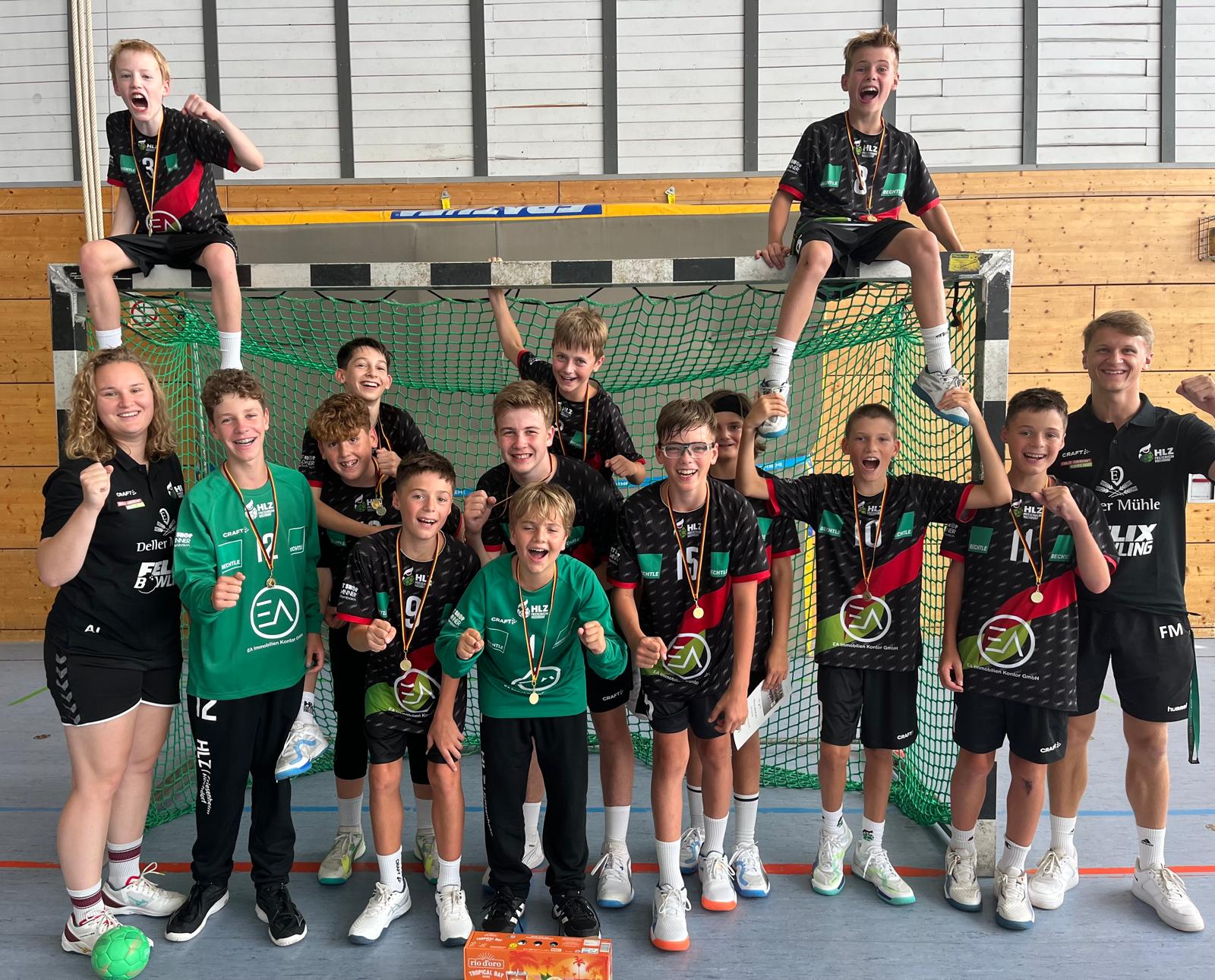 Bereits um 7.15 Uhr rollten die Autos jedoch in Richtung Zweibrücken, denn man nahm auf Einladung von Stefan Bullacher am CAP-Markt-Cup 2024 der SG Zweibrücken teil. Doch die frühe Uhrzeit setzte wohl nur den mitgereisten Fans zu. Von Müdigkeit war bei der U13 nichts zu sehen. Mit einer Extraportion Motivation, man trat das erste Mal in den neuen HLZ-Trikots an, startete man um 9.20 Uhr in die erste Partie gegen den TV Nieder-Olm. Die Vorgabe des Trainerteams um Fabian Manger und Anna Isselhard war die Umsetzung der Inhalte aus dem vergangenen Trainingstag. Ohne Probleme gelang es den Jungs diese mit Bravour umzusetzen. Die Spieler in blau vom TV Nieder-Olm hatten kaum eine Chance das Tempospiel der HLZ-Jungs zu unterbinden und mussten sich mit 25:5 geschlagen geben. Direkt im Anschluss stand man dem Gastgeber aus Zweibrücken gegenüber. Während man zu Beginn die herausgespielten Chancen oft nicht verwandeln konnte, setze man sich auch bis zur 10. Spielminute mit 1:10 ab. Die Abwehrreihen agierten sehr offensiv und sorgten für zahlreiche Ballgewinne. So gewann man auch das Spiel gegen die SG Zweibrücken mit 5:18. Nach einer kurzen Pause traf man im letzten Spiel auf die Pfälzer Konkurrenz des TV Offenbach. Auch die letzten 20 Spielminuten des Tages waren geprägt vom hohen Tempospiel des HLZ-Nachwuchs, so dass man den Tag mit einem 28:7 Sieg beendete.
